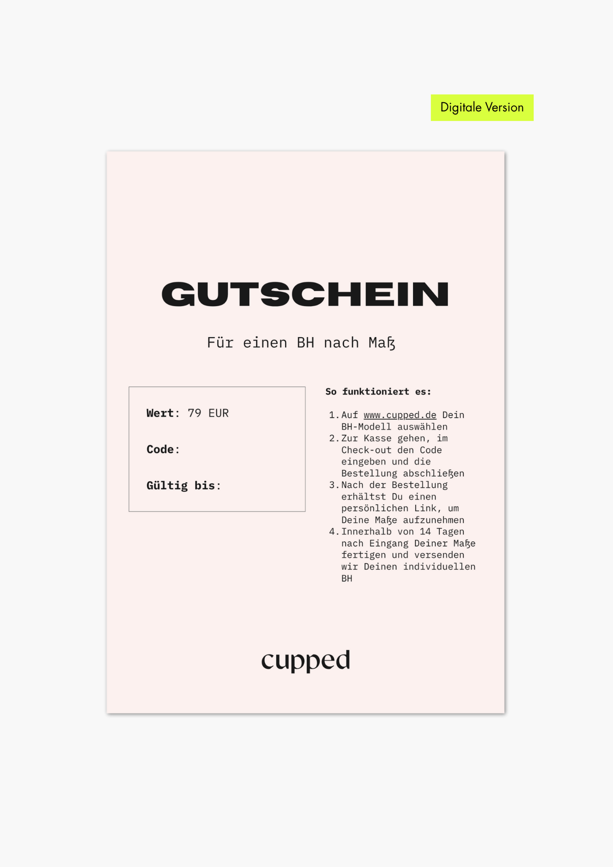 Geschenkgutscheine sind ab Kaufdatum drei Jahre gültig und ausschließlich auf www.cupped.de einlösbar.